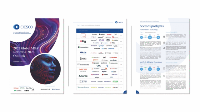Ciesco’s 2025 Global M&A Review & 2026 Outlook analyses M&A activity across the Technology, Media & Marketing sectors, combining deal statistics with thematic insights on buyer behaviour, private equity dynamics, sector sub-trends and geographic shifts.